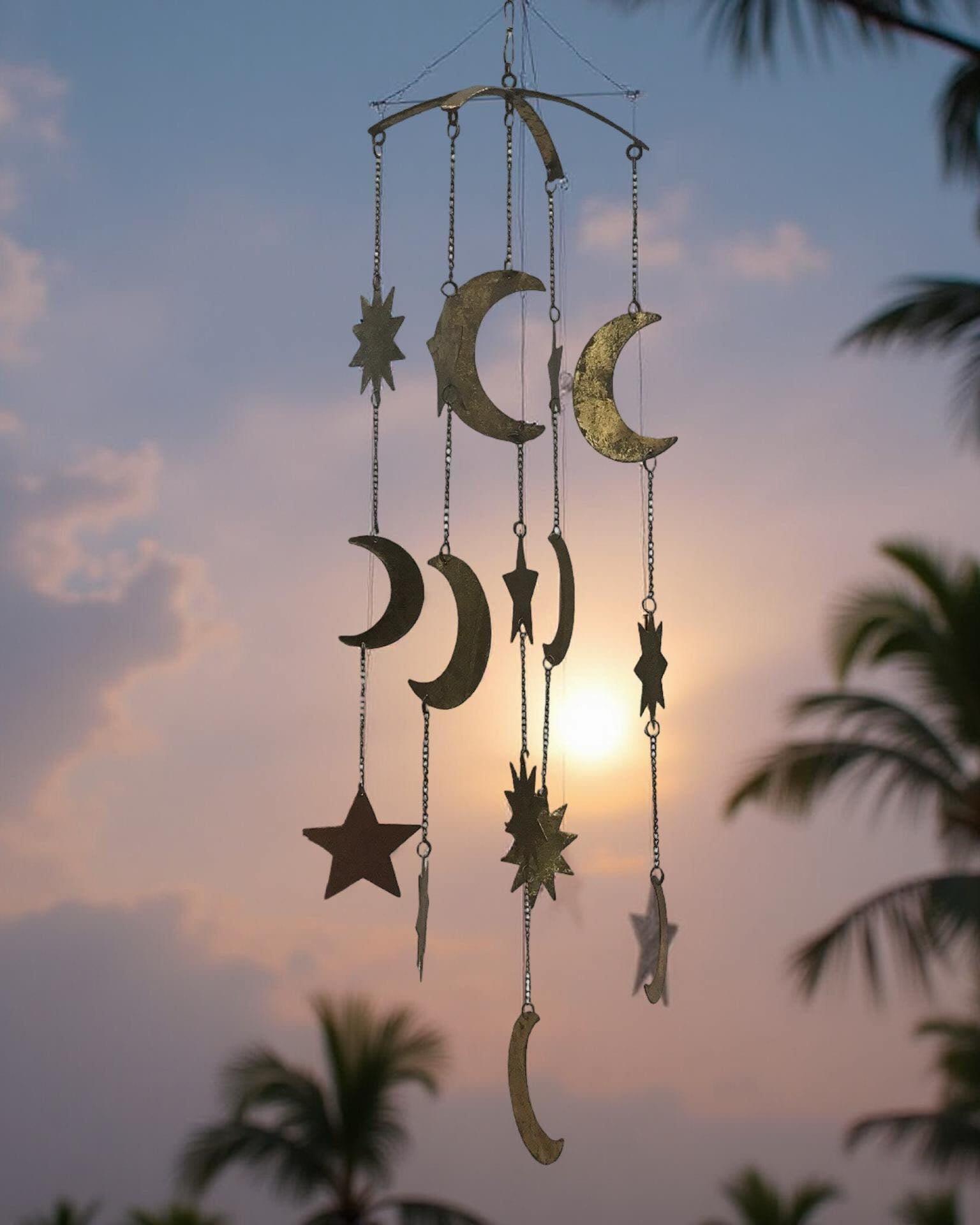 16 Piece Sun Moon Star Mobile on Jute Rope. Fantastic Addition to a Backyard Porch or Patio, Bishop Hook, or Hang This Beautiful Mobile Inside Your Home to Enjoy Year Round.