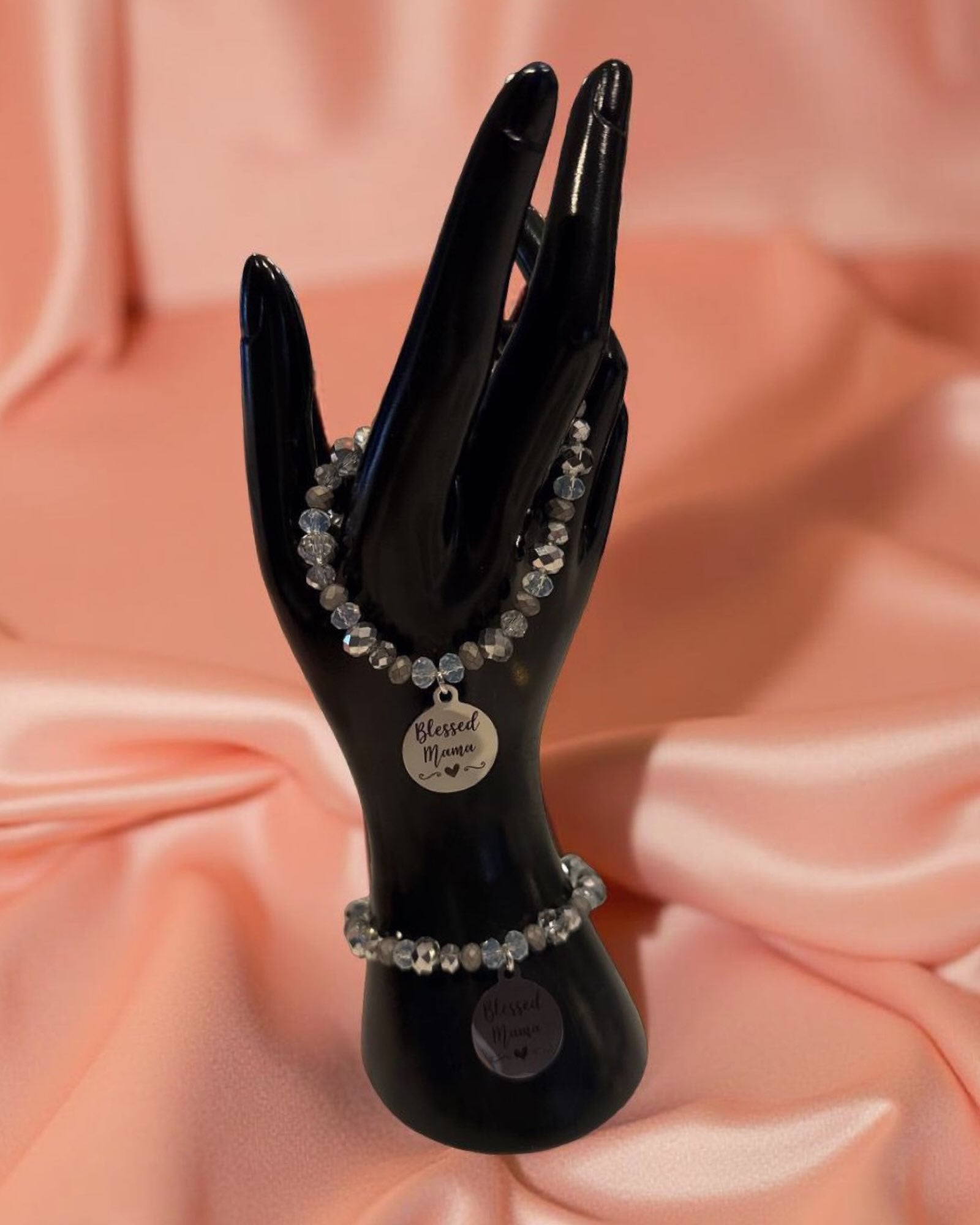 Blessed Mama silver bead bracelet handmade by The Beading Mama