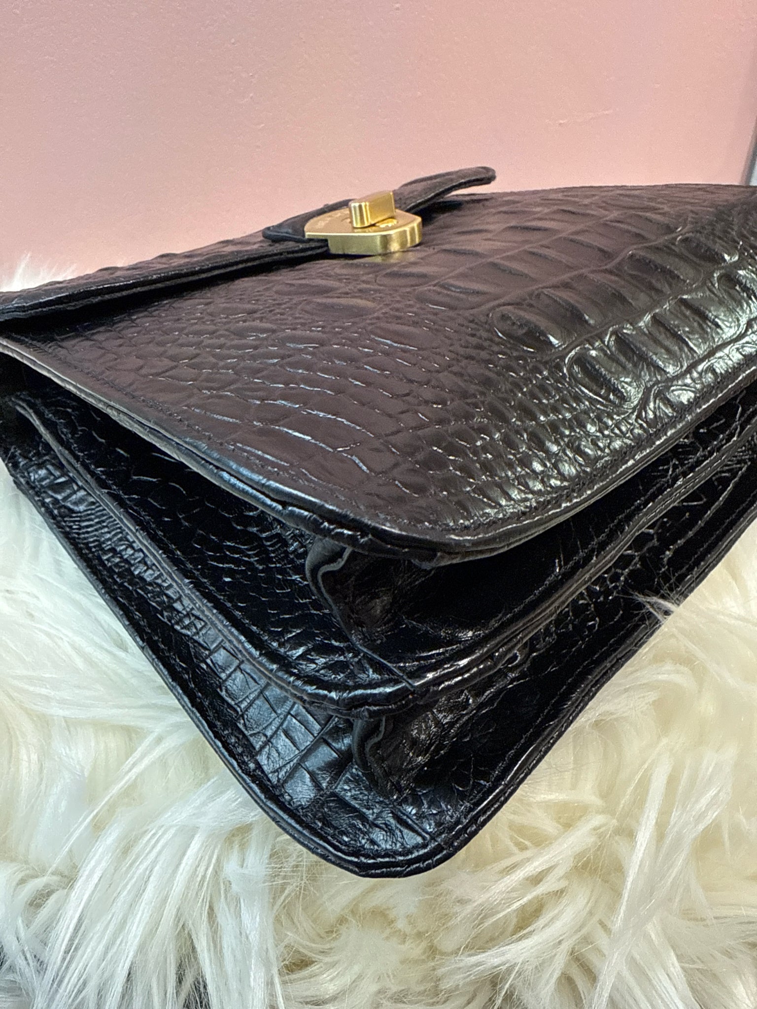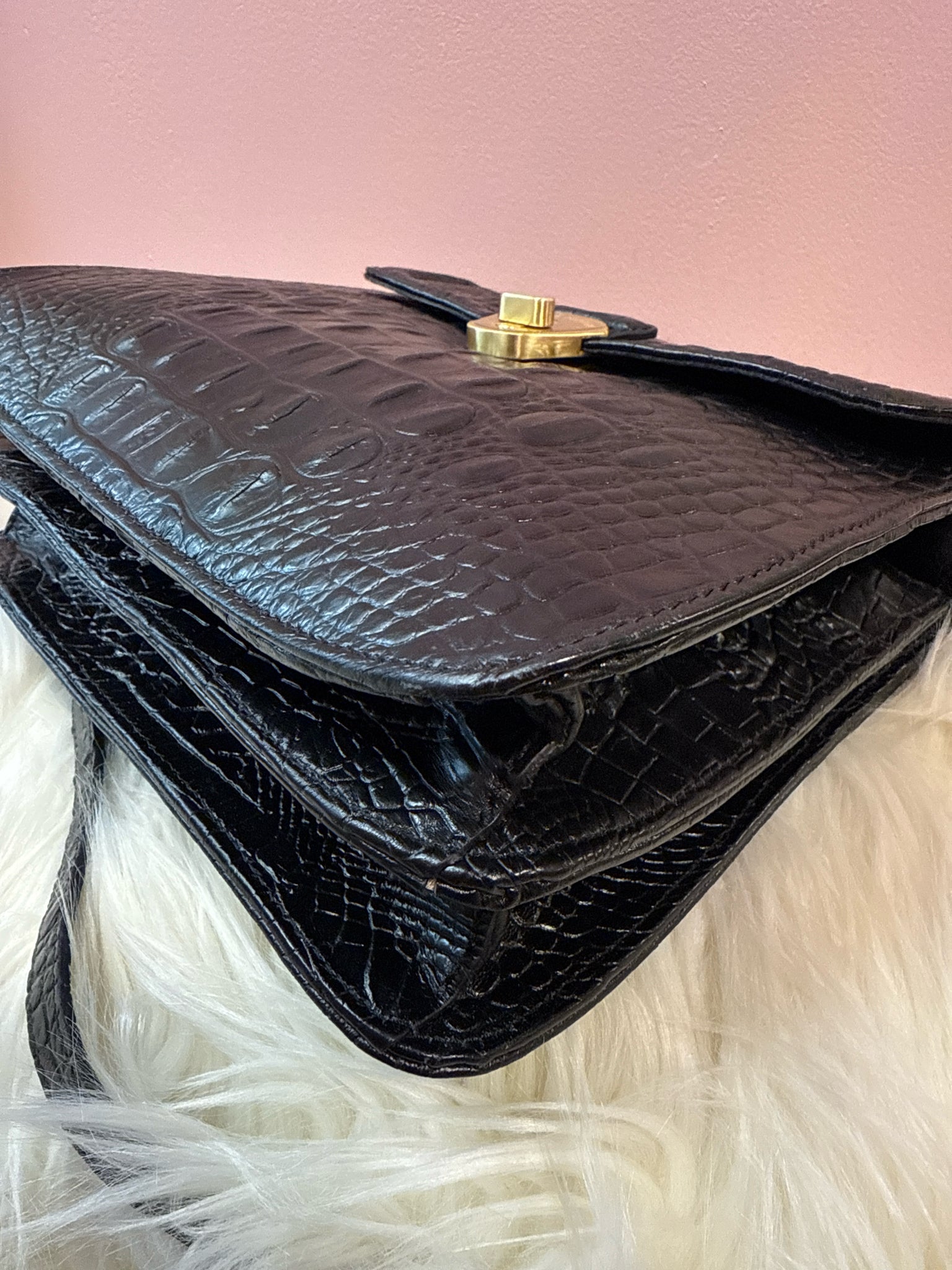 Brahmin Black Croc Embossed Vittoria Top Handle Shoulder Bag