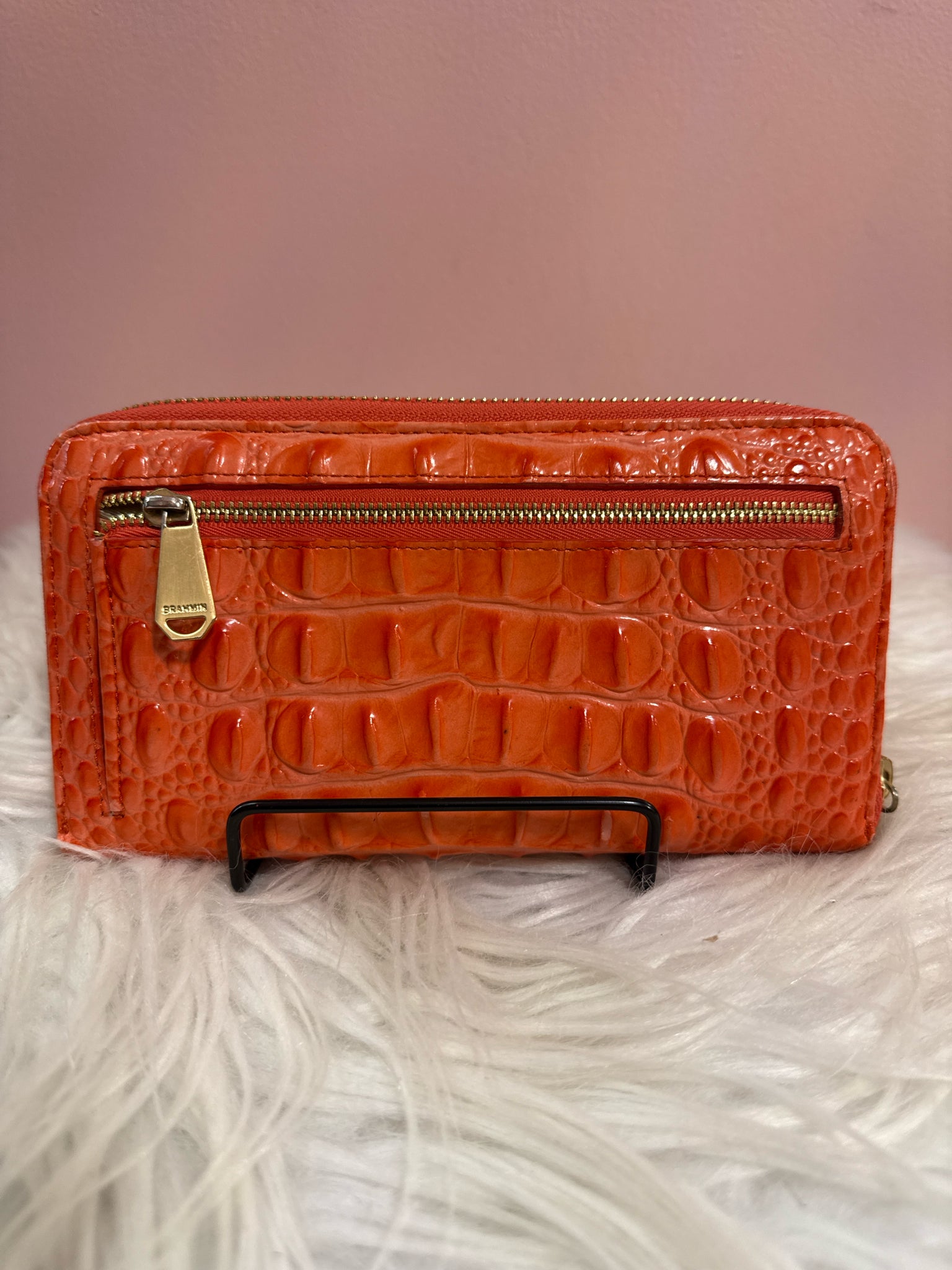 Brahmin orange zip around wallet. Beautiful Brahmin Wallet, Pre-Loved, Minor Wear on Corners. Matches Brahmin Duxbury Satchel Sold Separately.
