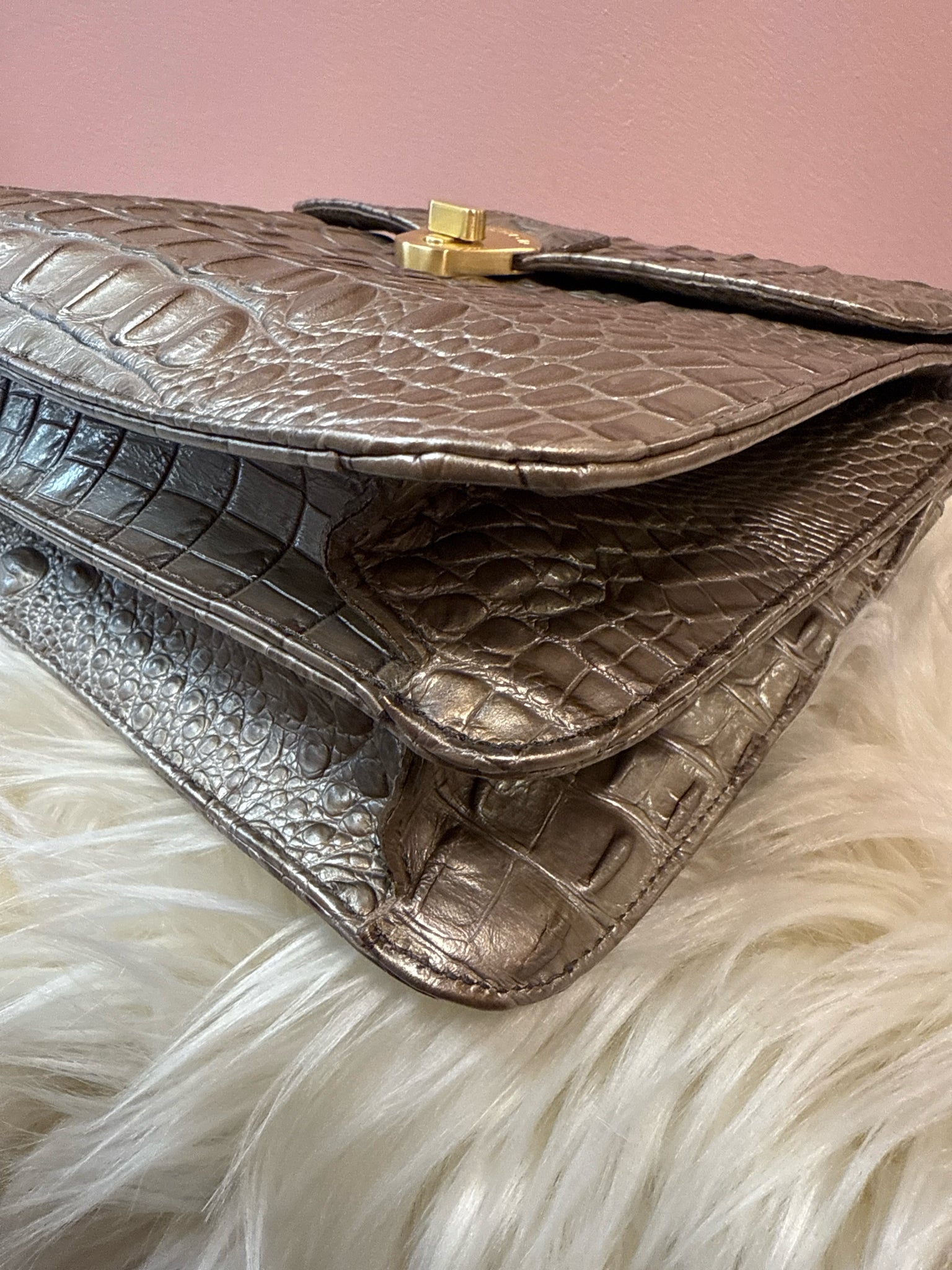 Brahmin Tapue/Pewter Croc Embossed Vittoria Top Handle Shoulder Bag