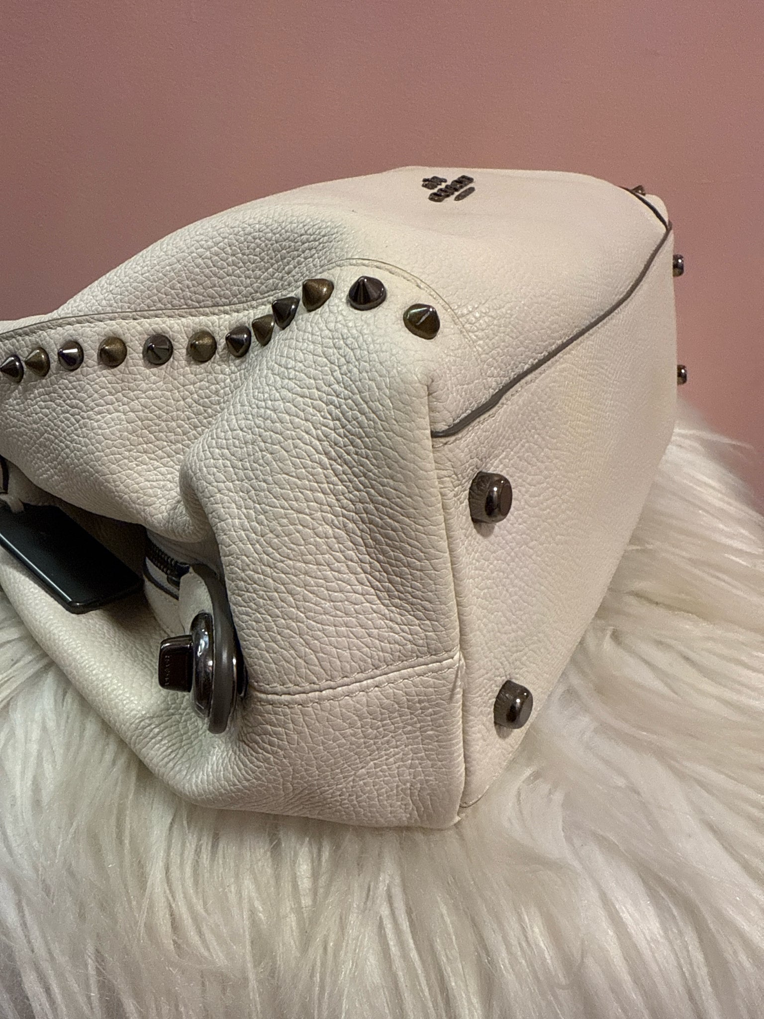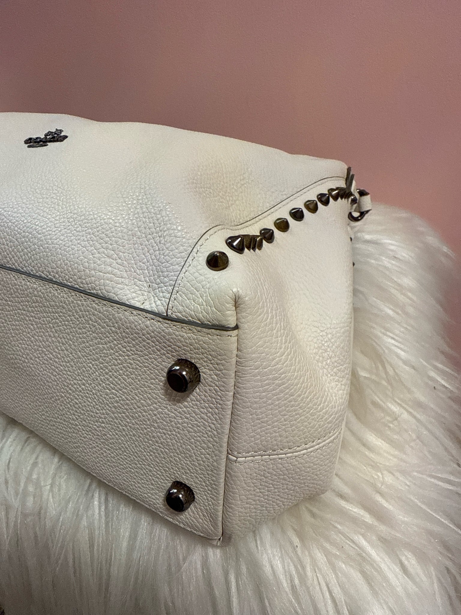 This Gorgeous Coach bag features Western inspired prairie rivets and pearly cabochons. Off White Pebbled Leather. Excellent Condition.