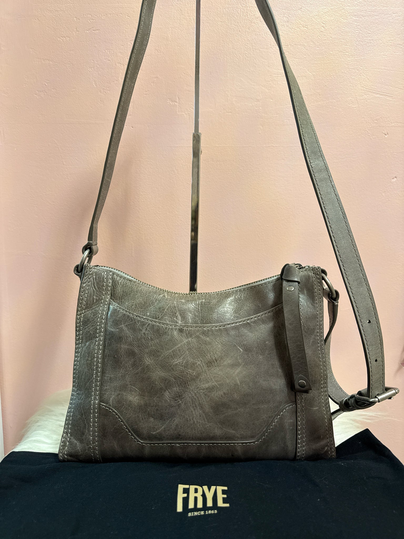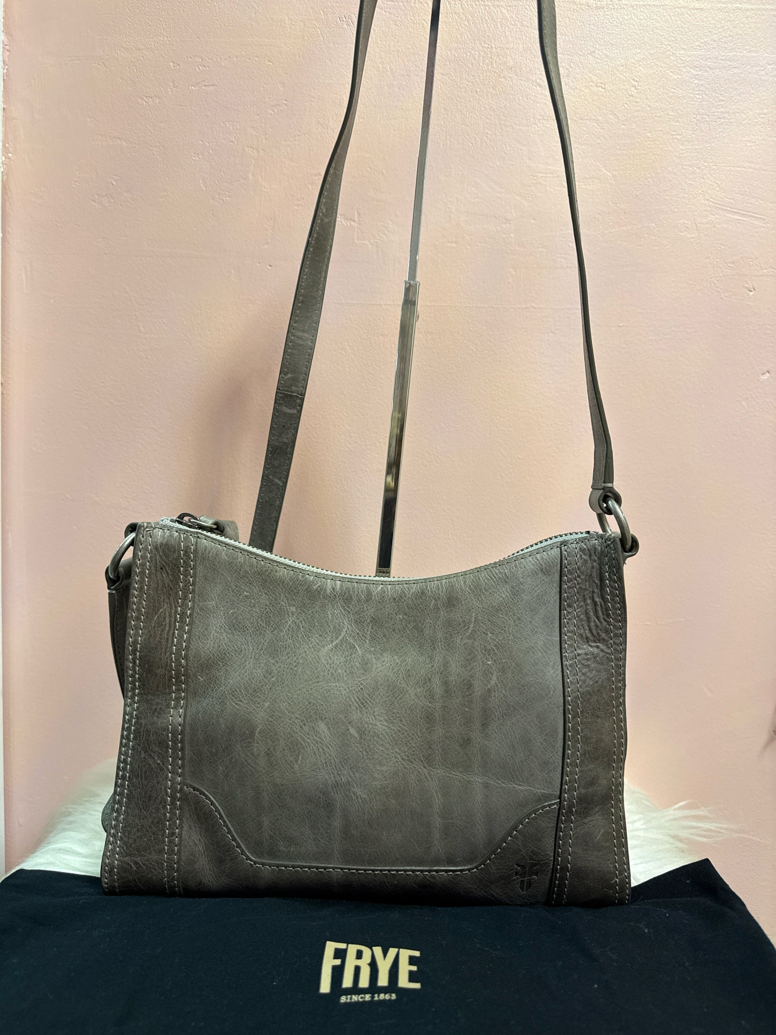 Frye antique carbon leather melissa zip cross body bag. Interior fabric lining with one interior pocket. Pristine condition