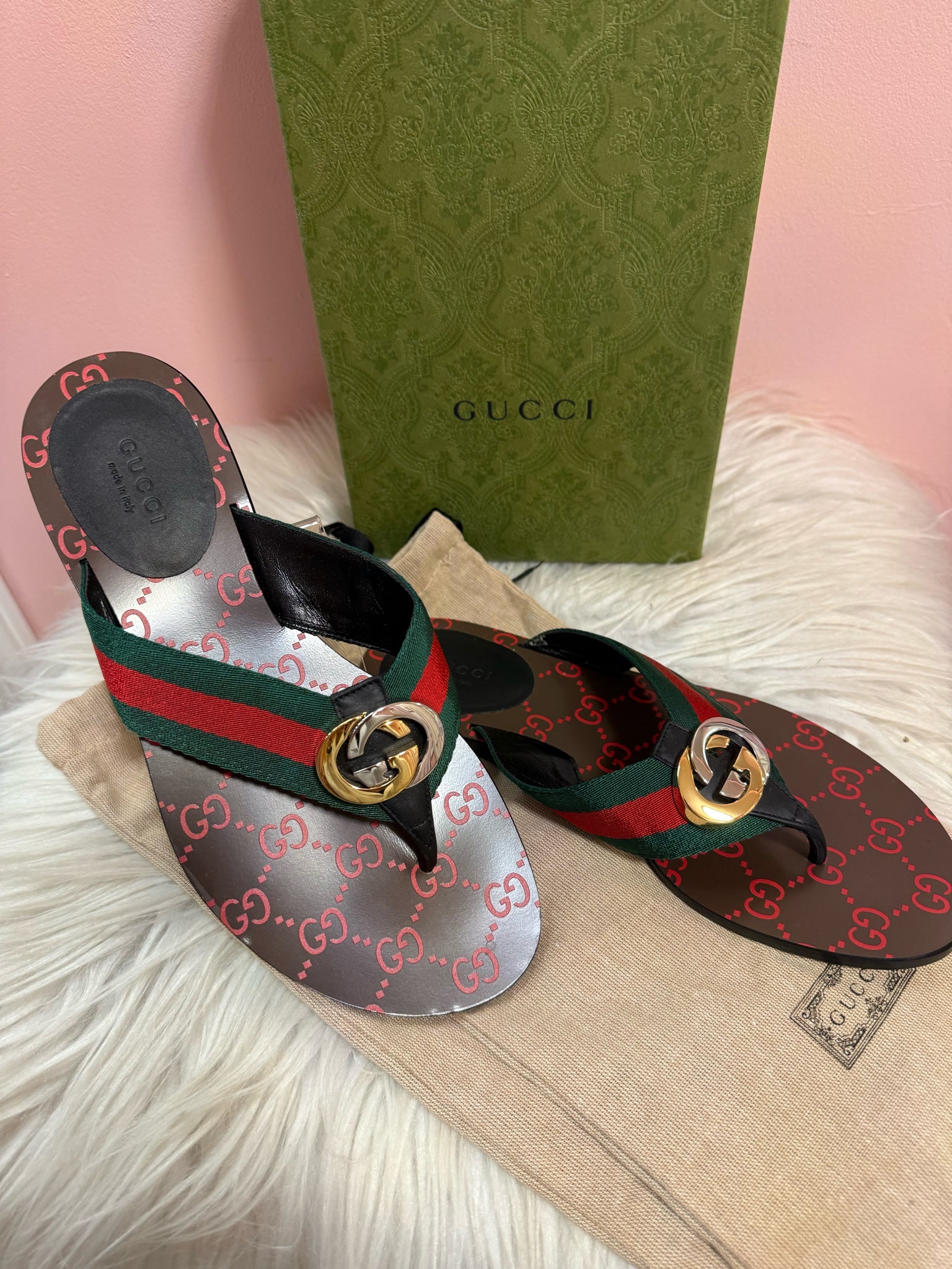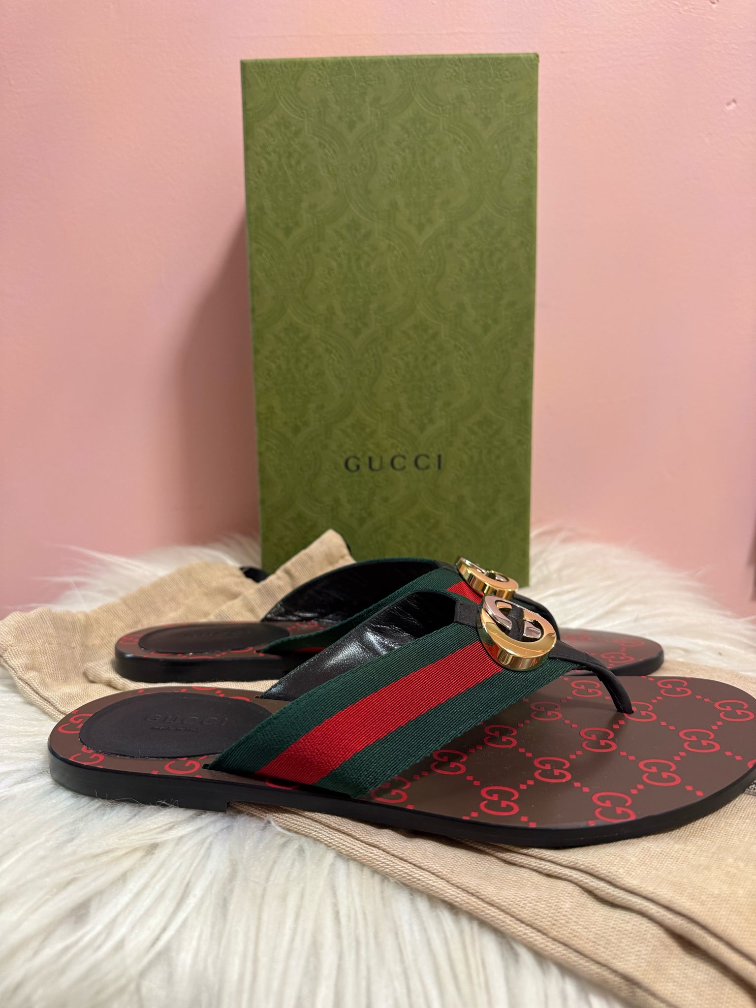 Gucci Kika Web Thong Sandal with Red GG logo. Comes with Box and Dust Bag. Never Worn, Pristine Condition