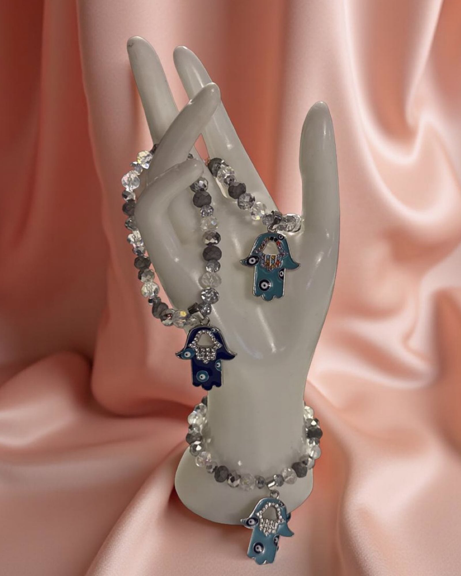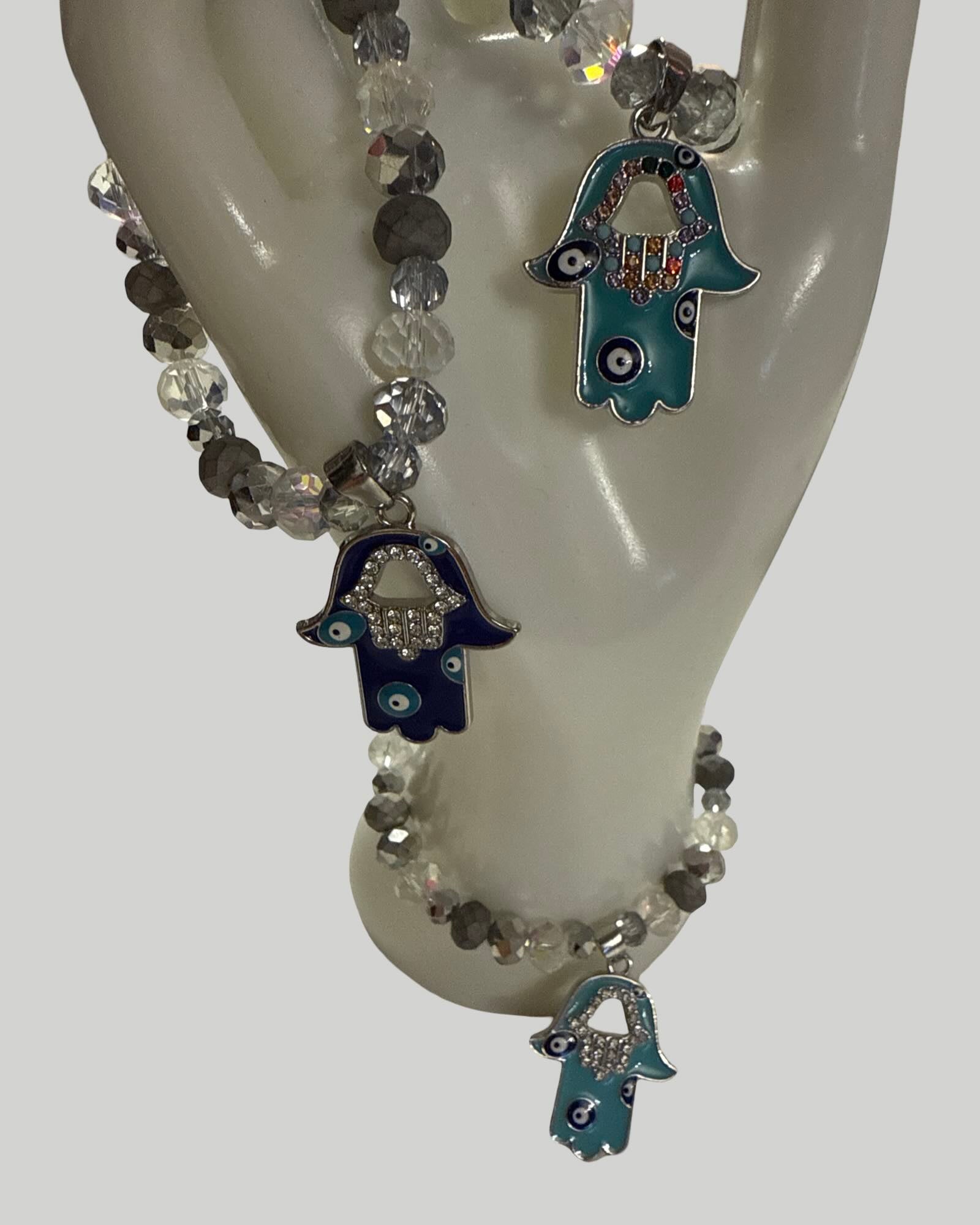 HAMSA FOR YOU CERAMIC. Navy and Light Blue HAMSA Beaded Bracelet. Colors May Vary as Each One is Handcrafted Making Every Bracelet Unique and Special.