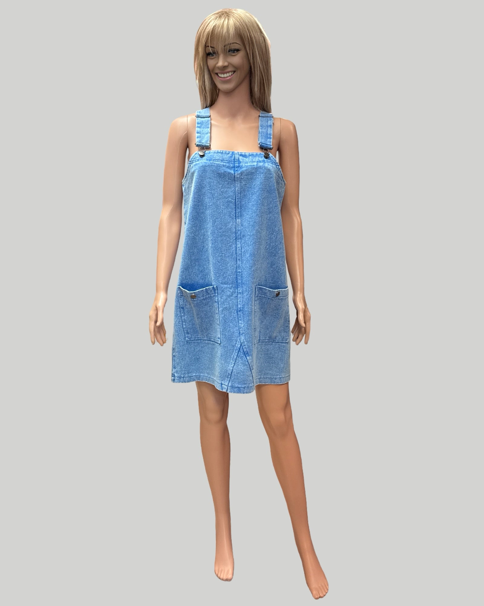 MINERAL WASHED TWILL OVERALL DRESS DENIM BLUE S. Adorable! Wear this Washed Denim Overall Dress Alone…Or with a Tank or Tee
