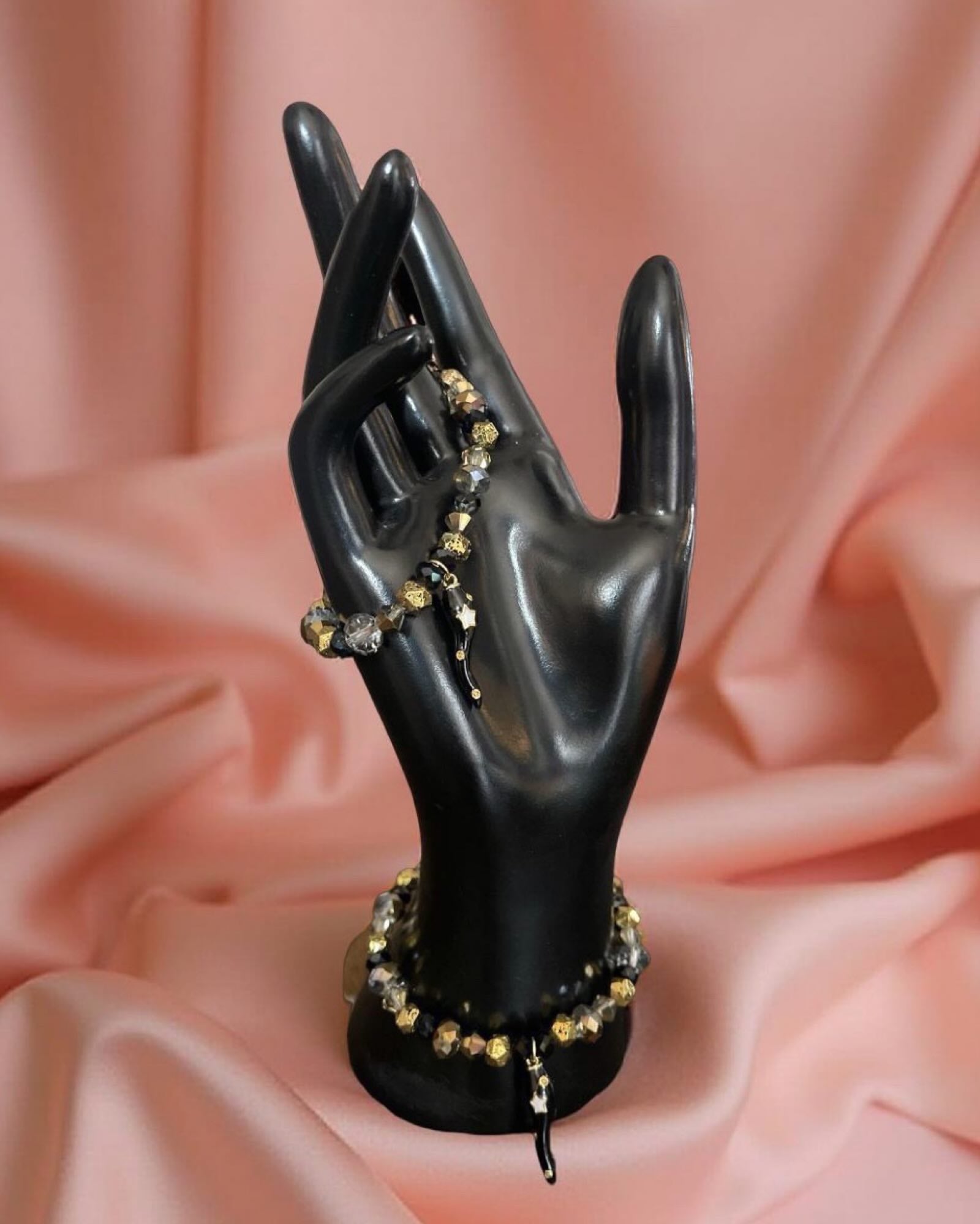 ITALIAN HORN BLACK AND GOLD BEADED BRACELET, BLACK HORN WITH GOLD STARS