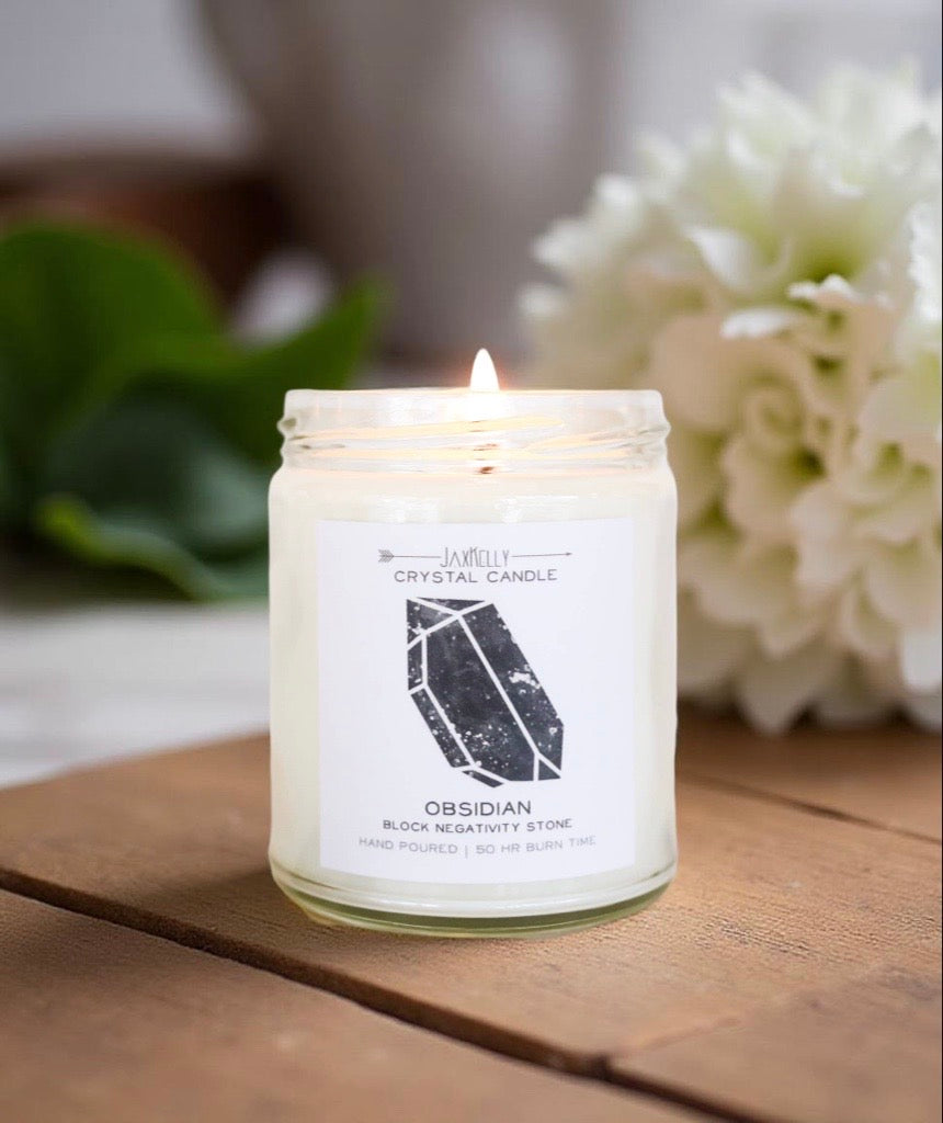 CRYSTAL OBSIDIAN CANDLE 9 OZ.