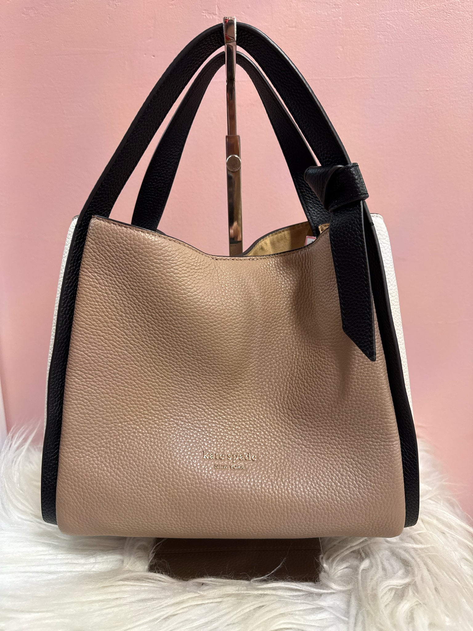 Kate Spade Knott Color Block Handbag Long Strap Not Available. Neutral Colors so she's perfect to wear with anything. Pristine Condition.