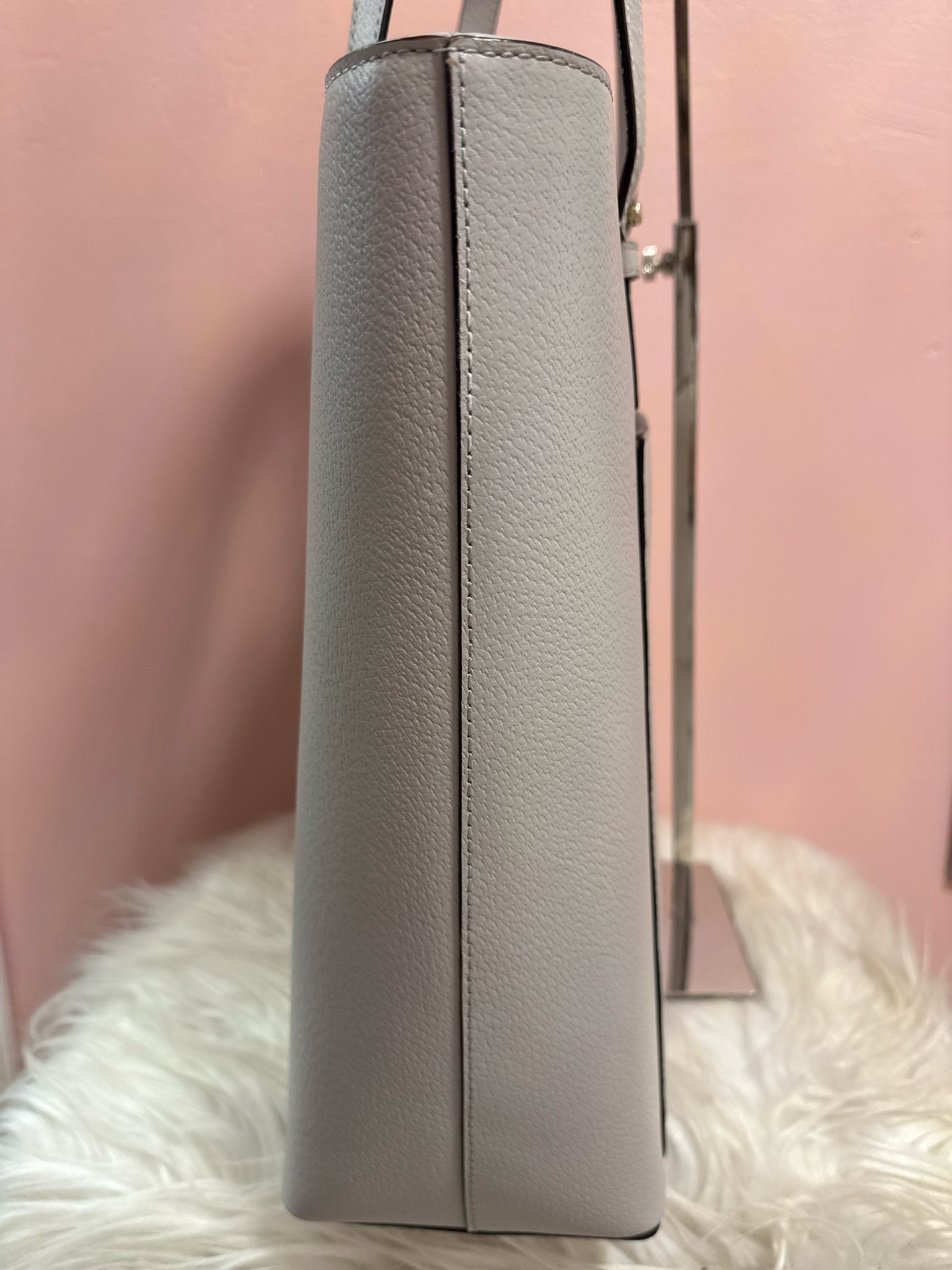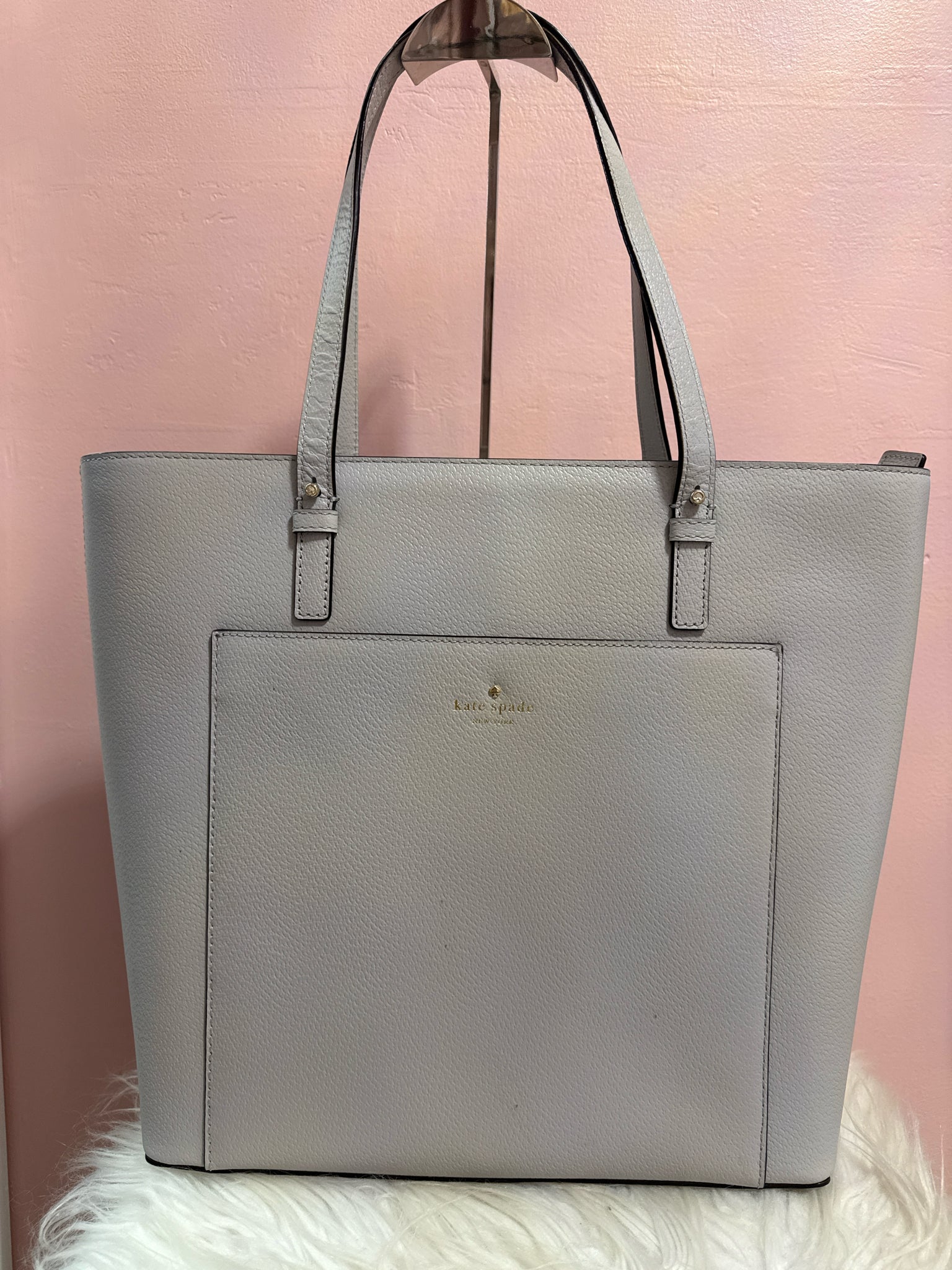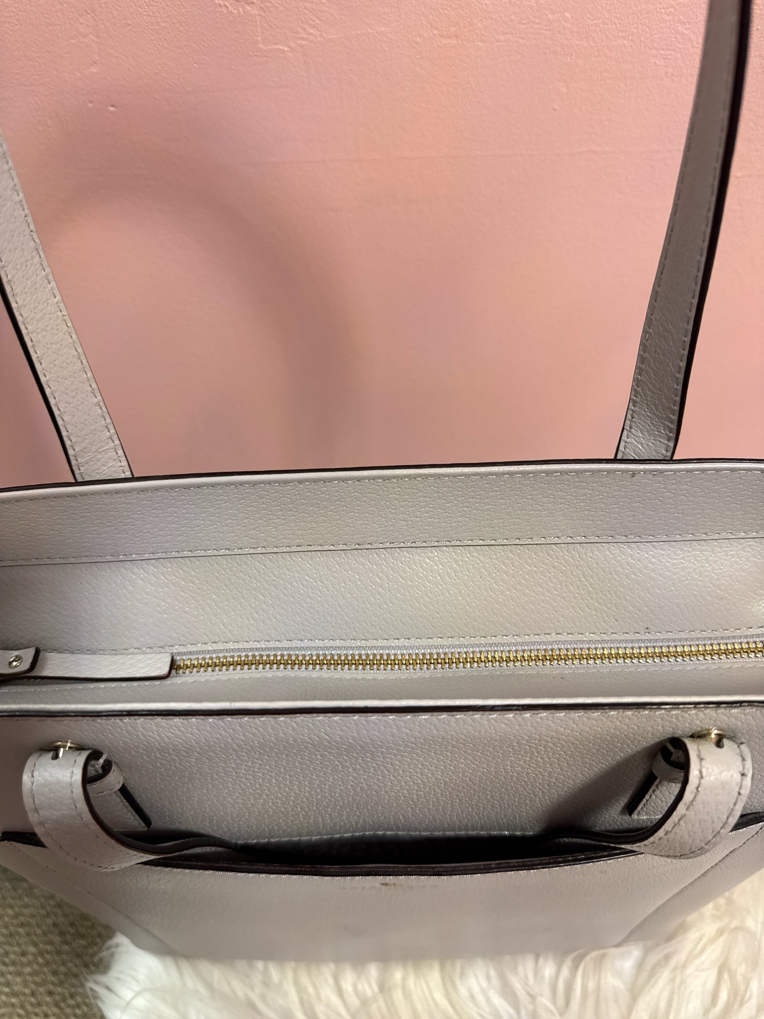 Kate Spade light gray zip top tote bag. Front Pocket, Great for Everyday Use, Travel, Work, Anything! 13" x 13" x 5"