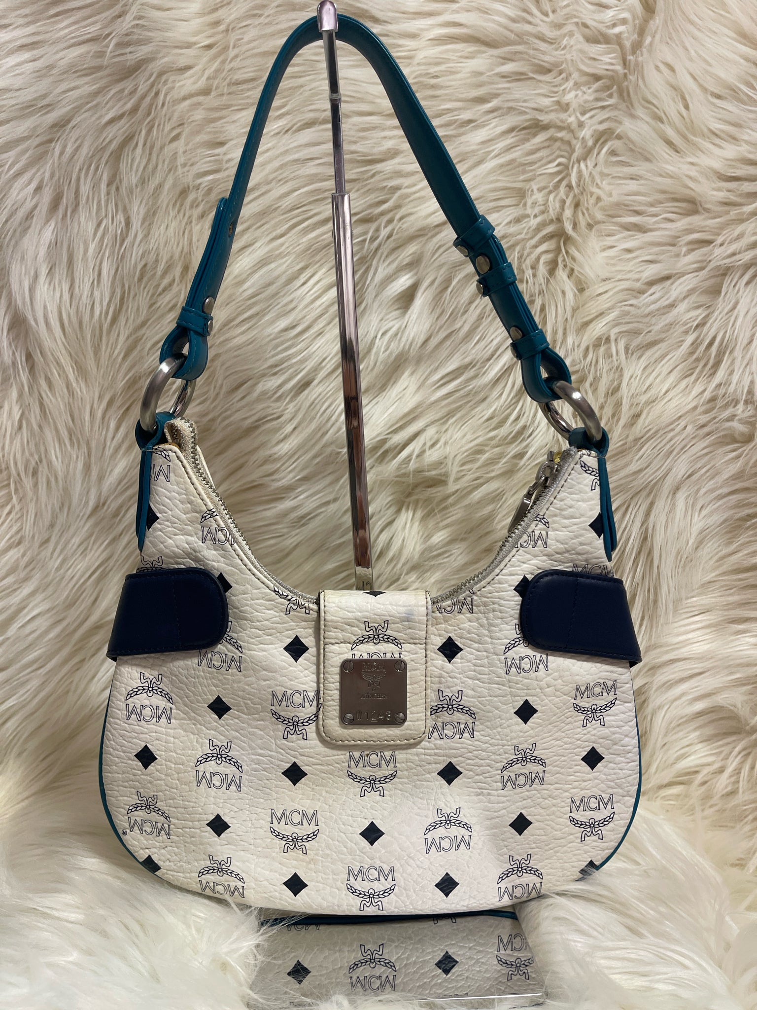 MCM VISTEOS POCHETTE SHOULDER BAG WHITE/BLUE/YELLOW/TEAL. Beautiful MCM Pochette, Matches Every Outfit.