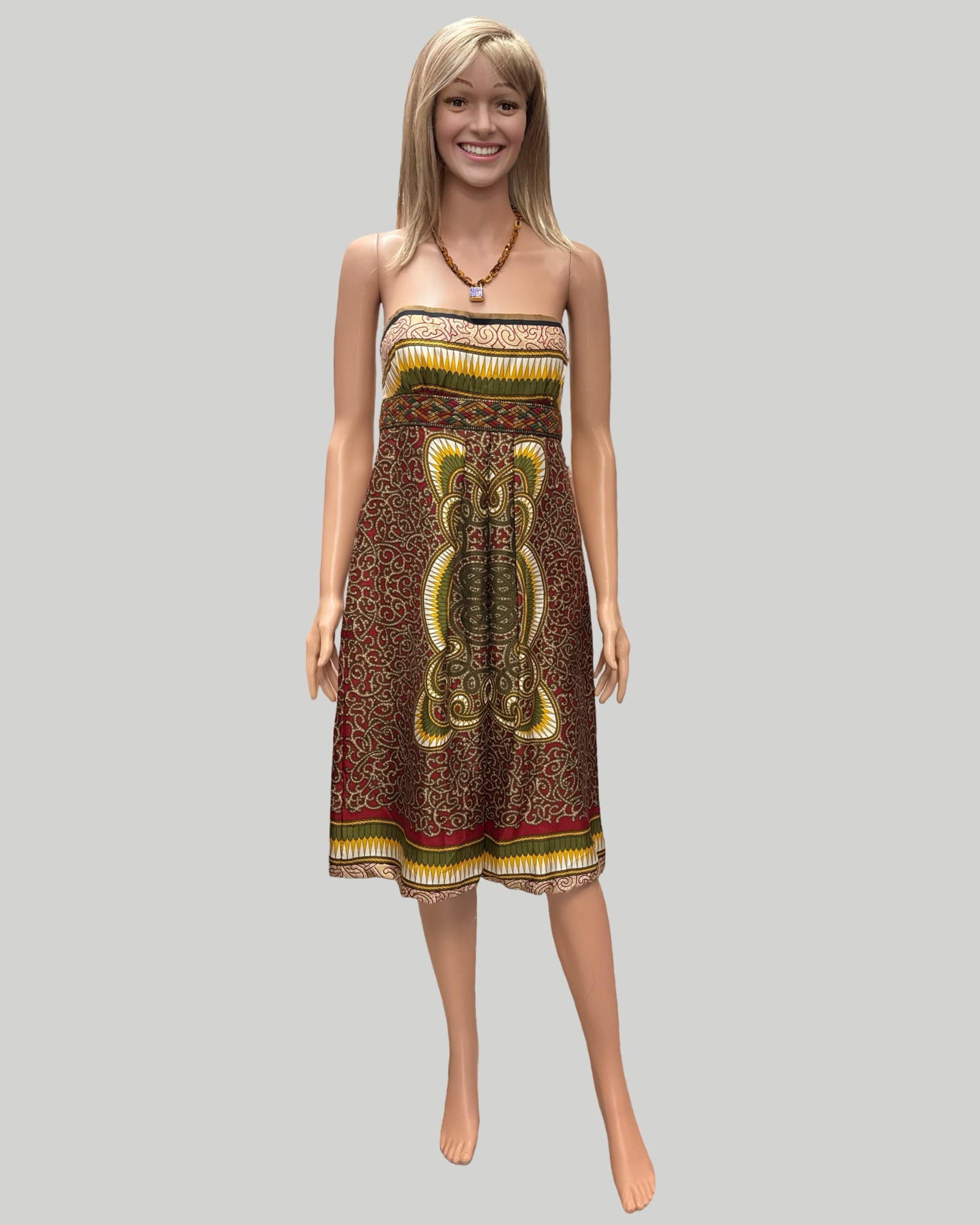 Beautiful Nicole Miller Strapless 100% Silk, Brown with Green and Red Paisley Print Dress. Back Zipper Closure. Stunning!