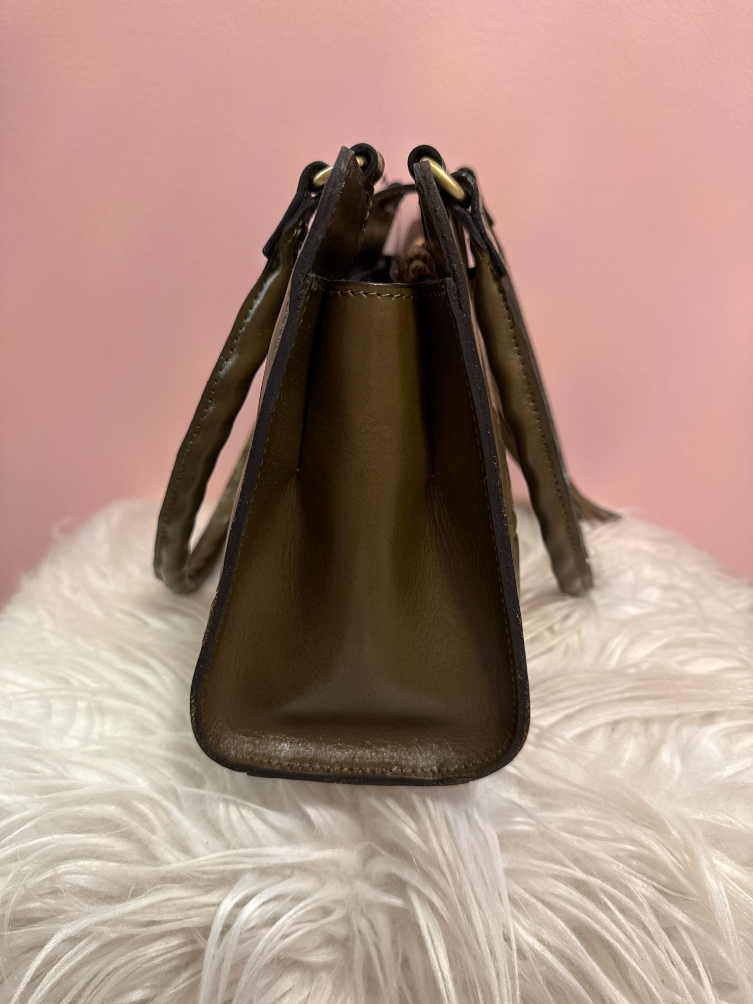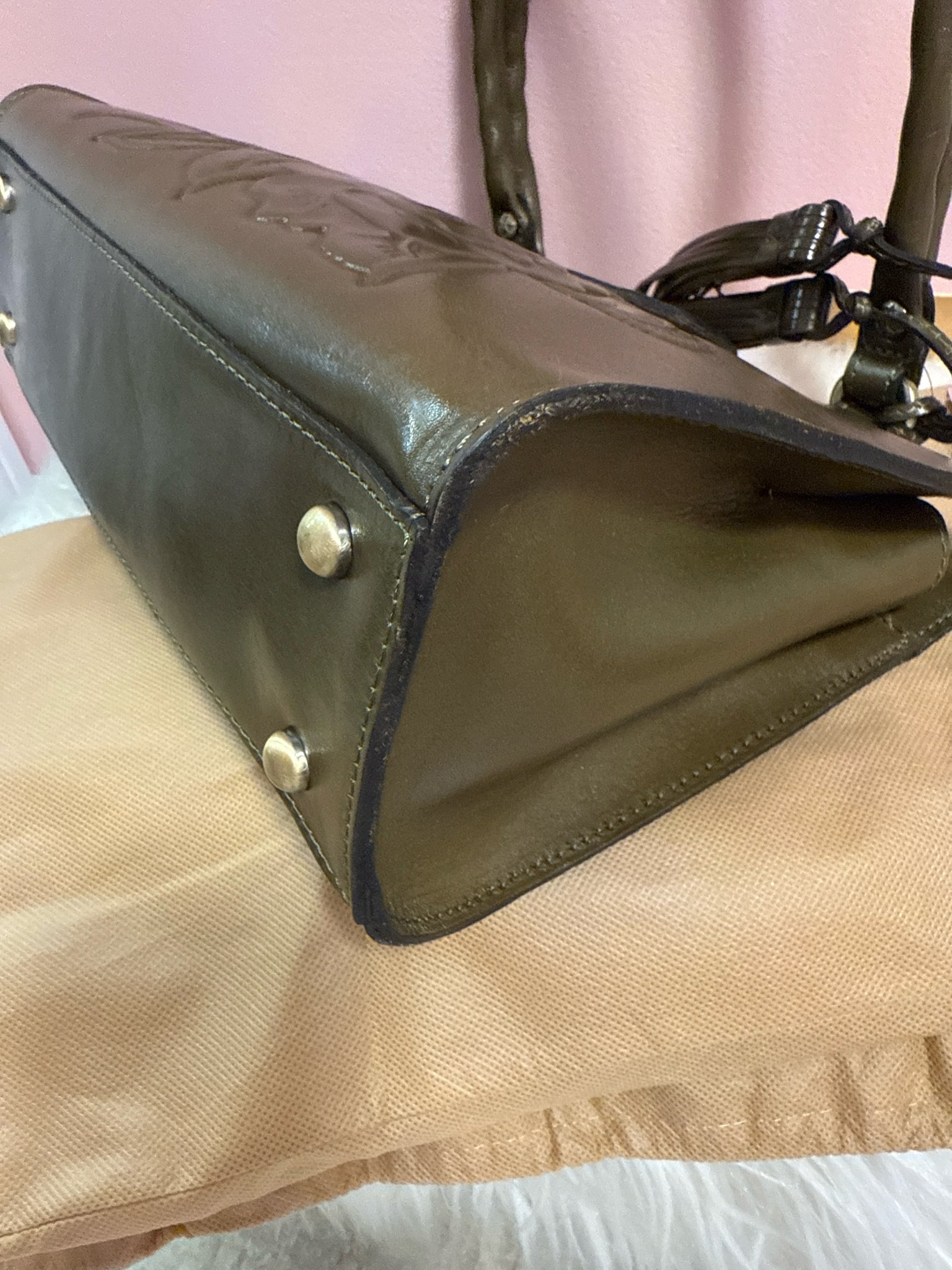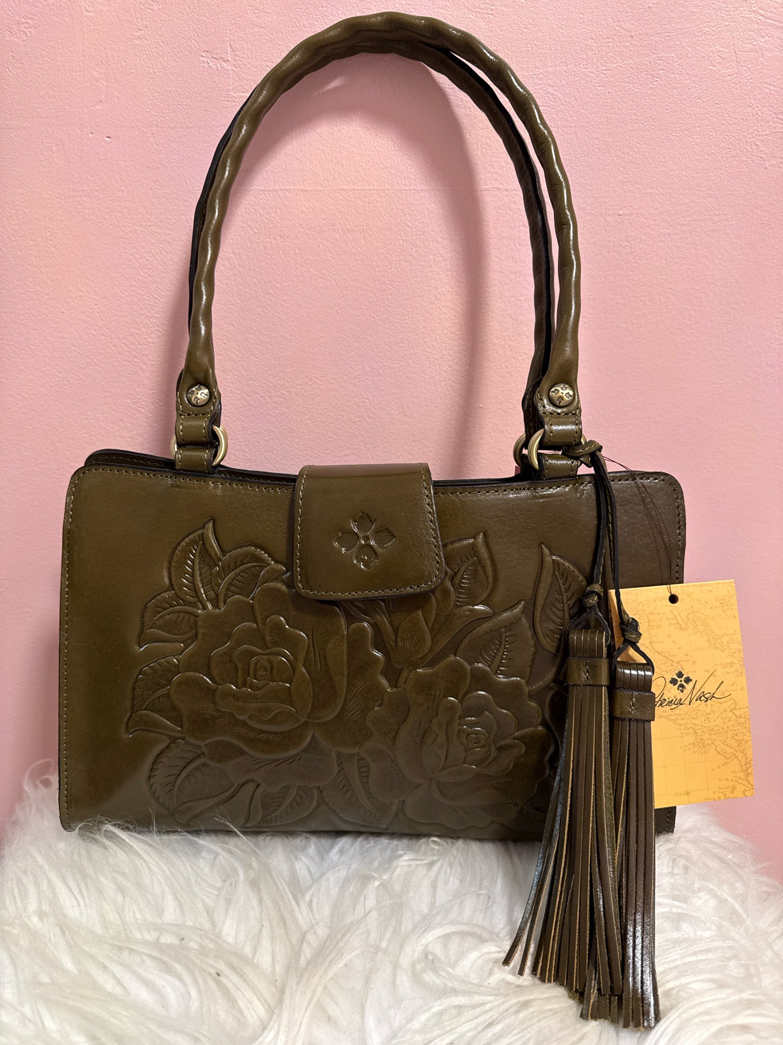 Patricia Nash Vintage Vegetable Tan Rose Tooled Collection. Rienzo Soft Olive, Beautiful Color and She's NWT and comes with a Dust Bag.