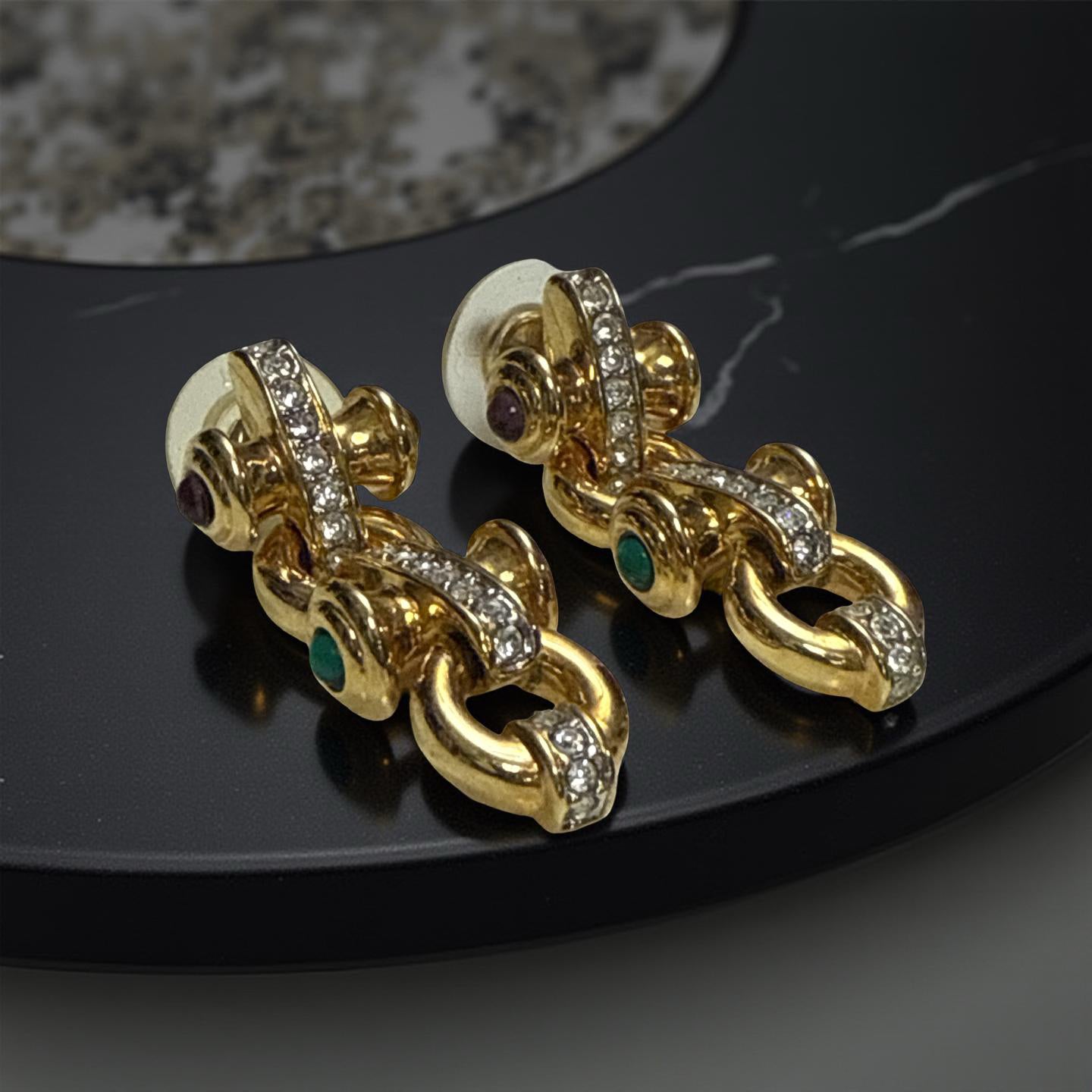Swarovski barbell gold plated link with clear color crystal earrings. Matching Bracelet Available.