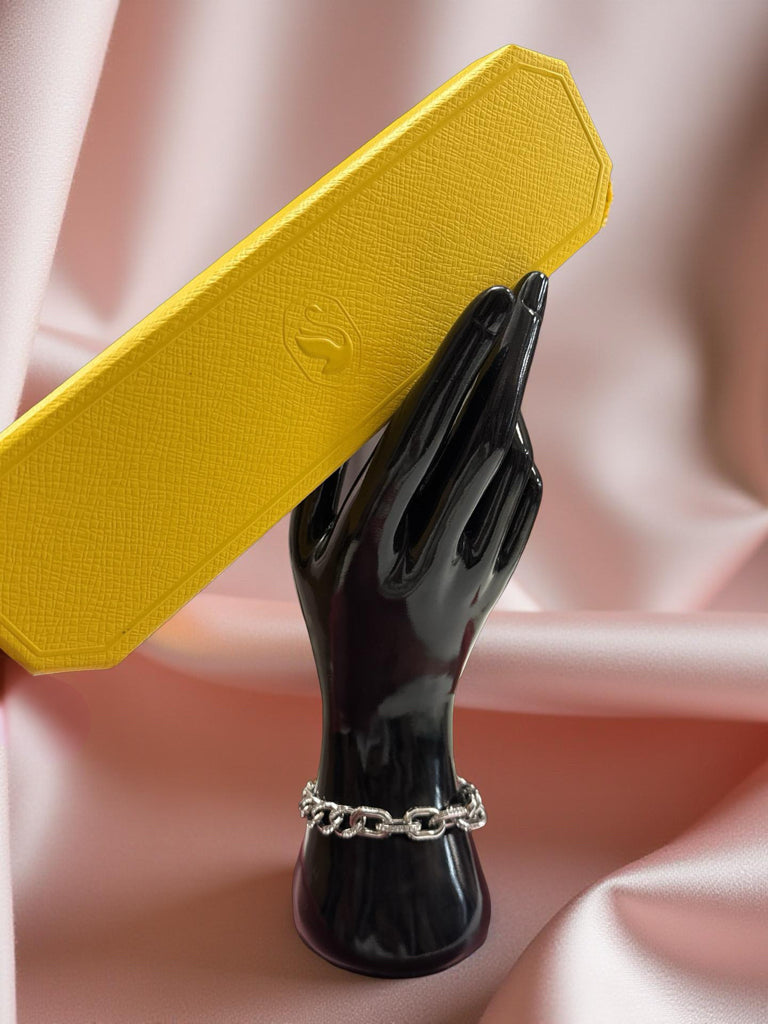 Swarovski MB CRY/RHS M silver rhinestone ring with box beautiful yellow box. Beautiful Swarovski Bracelet in Pristine Condition. Makes a great gift with the box!