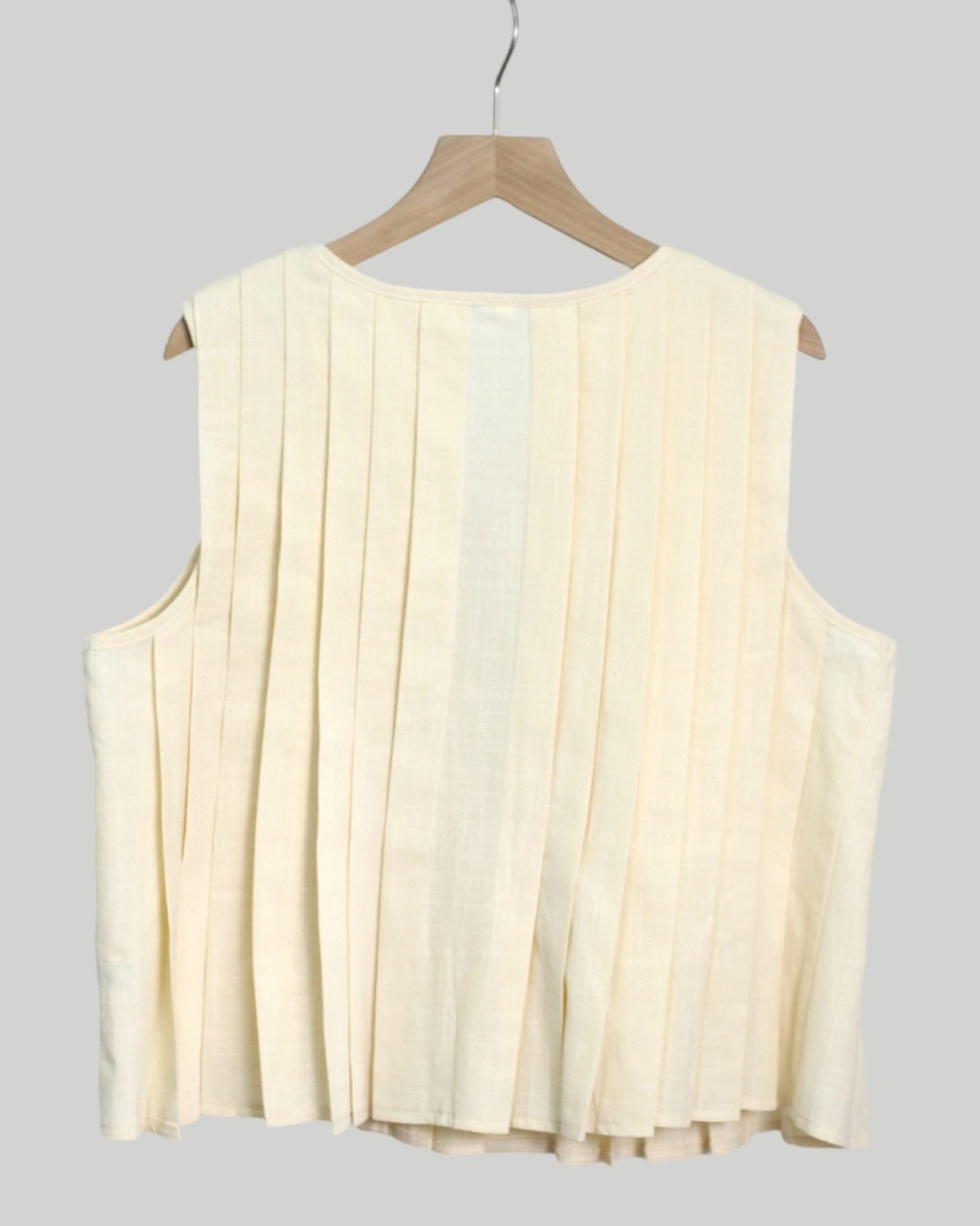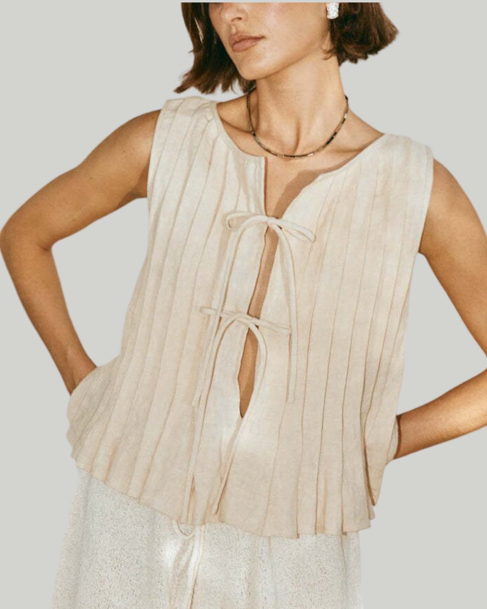 VERTICAL PLEATED SLEEVELESS FRONT-TIE TOP available in beige & black