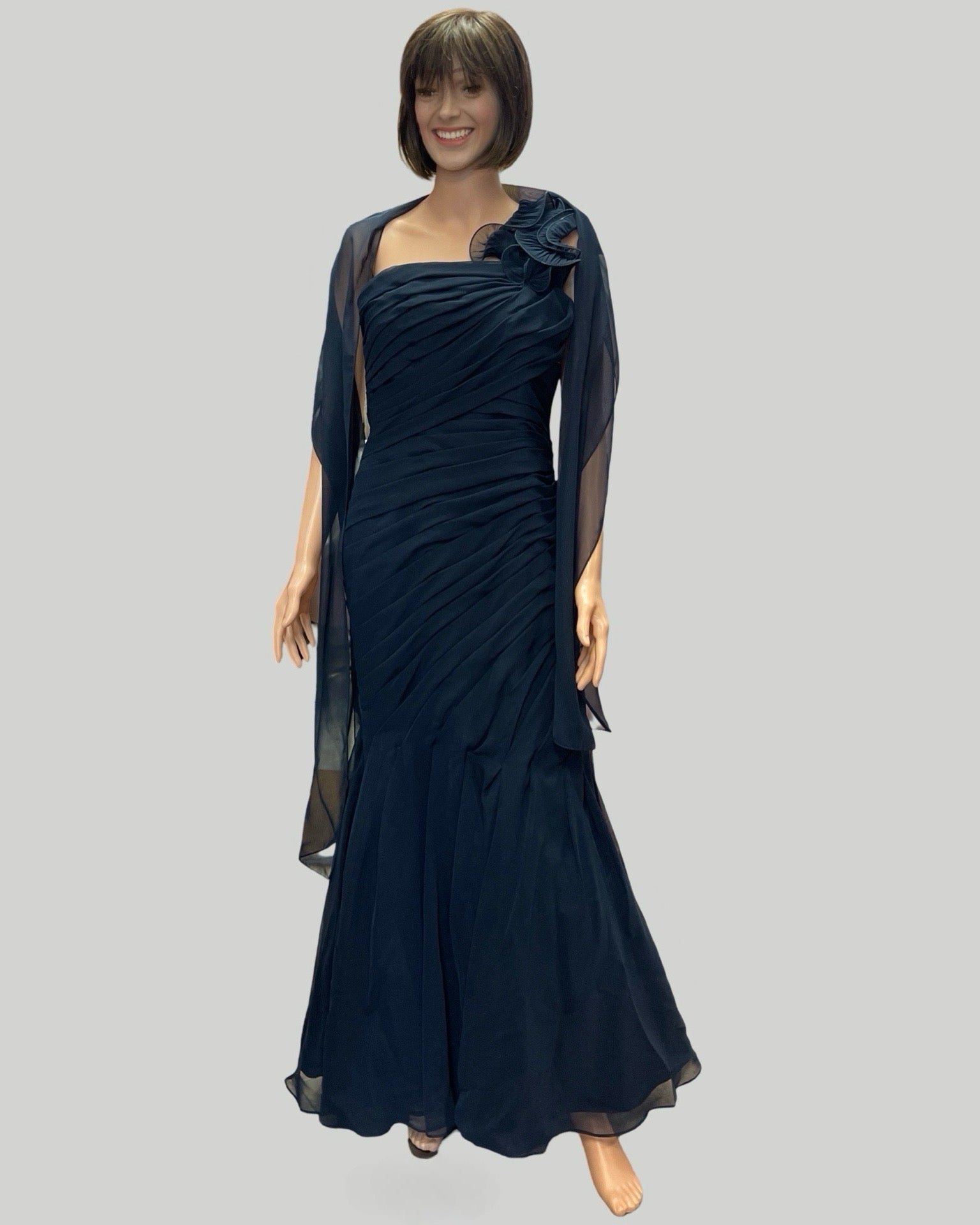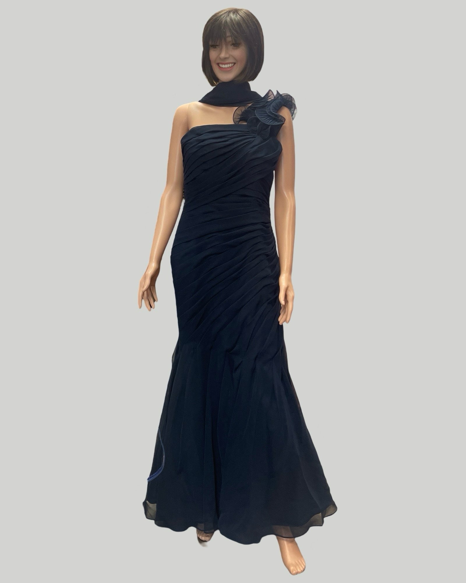 VM COLLECTION NAVY RUFFLE GATHERED DETAIL MATCHING SHAWL SZ 8